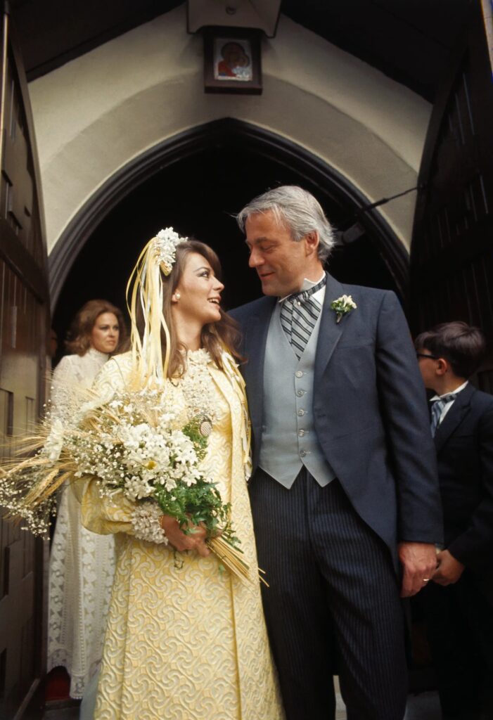Актриса Натали Вуд и ее жених Ричард Грегсон перед церковью Пресвятой Богородицы, после их свадьбы по русскому православному обряду 30 мая. Мисс Вуд, которая имеет русское происхождение, держит букет из пшеницы в соответствии с русской традицией.