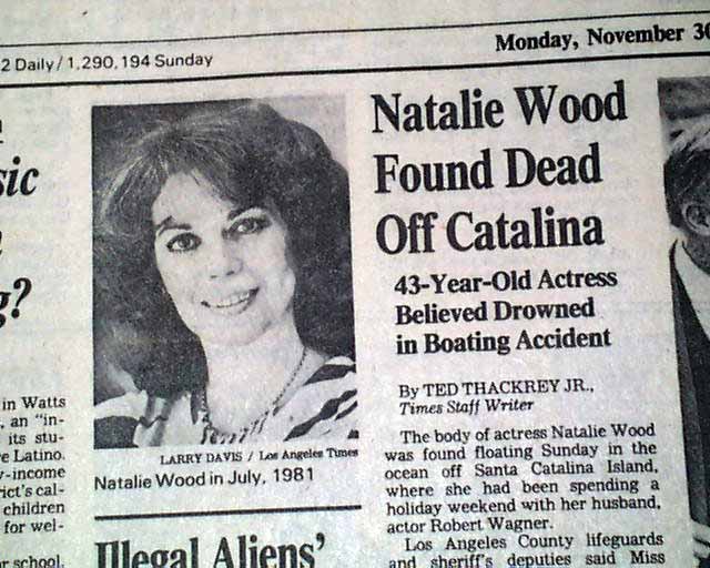 Жизнь Натали Вуд оборвалась трагически и внезапно в ночь на 29 ноября 1981 года. Она утонула у берегов острова Санта-Каталина, когда находилась на яхте вместе с мужем Робертом Вагнером и актёром Кристофером Уокеном. Обстоятельства её смерти до сих пор вызывают множество вопросов и споров.