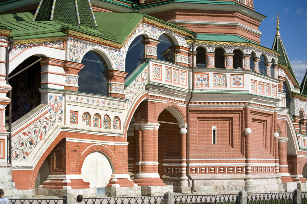 Как главный собор одного из самых многолюдных районов Москвы, Покровский собор — или храм Василия Блаженного — стоит подобно мощному скальному выступу, над которым проходили волны перестроек: он принял в себя некоторые изменения, но никогда не утратил той формы, которая прославляла возвышение Московии — и России как таковой. Его центральная башня стала символом России, дополняя Кремль как выражение национальной идентичности. И всё же в ансамбле башен, известном как собор Василия Блаженного, сохраняются и иные пласты смысла. В последующих статьях будет рассмотрен интерьер этой знаковой святыни.