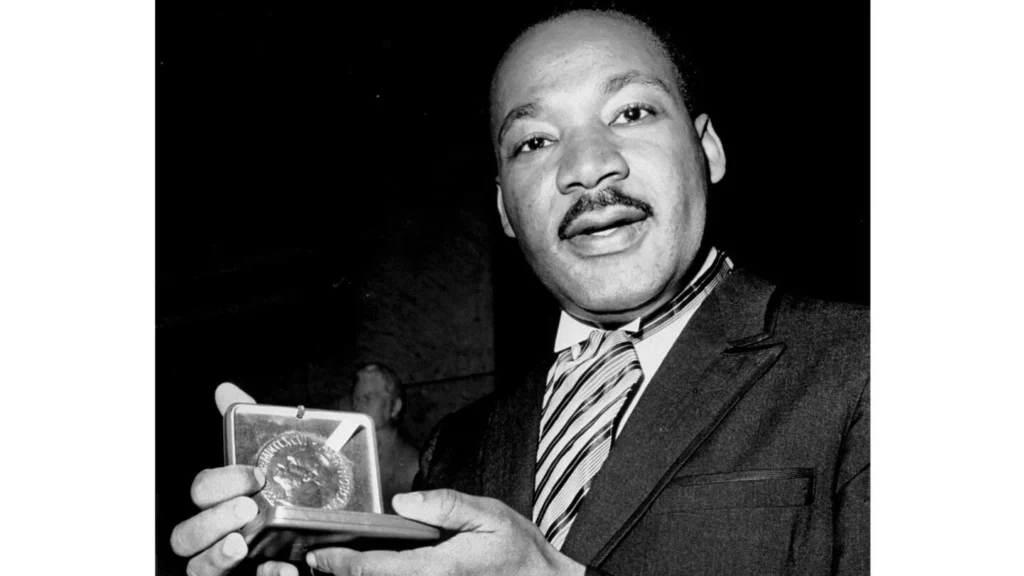 В 1964 году Мартин Лютер Кинг стал самым молодым лауреатом Нобелевской премии мира. Награда была присуждена за его ненасильственную борьбу с расизмом и вклад в развитие гражданского общества.