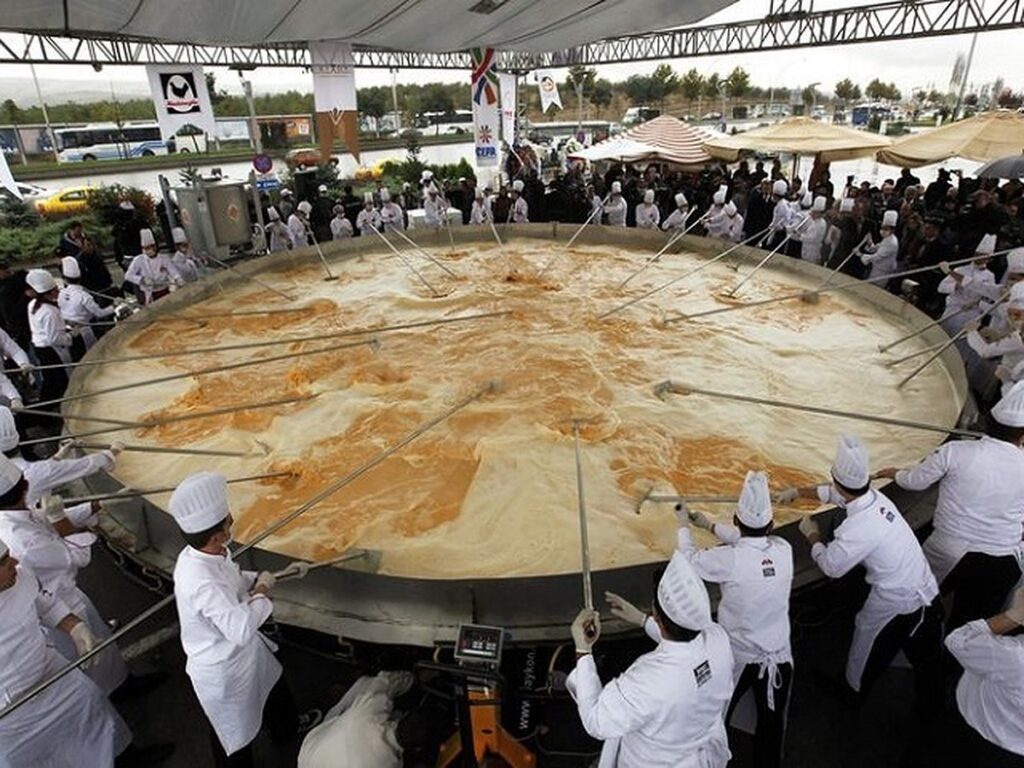 Этот гигантский блин имел диаметр 15,01 метра (49 футов 3 дюйма) и толщину около 2,5 см, а его вес составил примерно 3 тонны (6614 фунтов).