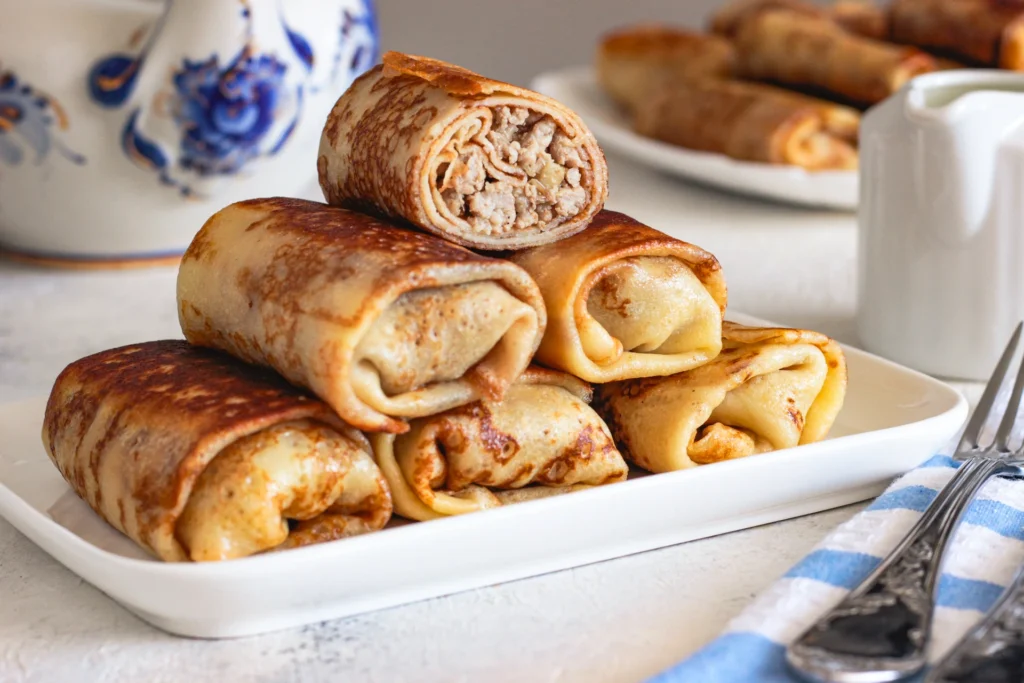 Русские блины — тонкие, эластичные, иногда почти прозрачные. Их пекут на молоке или воде, нередко с дрожжами, и используют как основу: в них заворачивают начинки, подают с икрой, сметаной, грибами, мёдом или вареньем. Блин здесь — часть ритуала, совместной трапезы, праздничного или семейного стола.