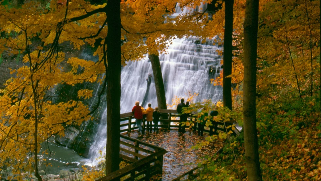 Природные достопримечательности штата не менее разнообразны. Национальный парк Cuyahoga Valley National Park соединяет Кливленд и Акрон зелёным коридором лесов, рек и водопадов. В южной части штата расположен живописный регион Hocking Hills с утёсами, пещерами и глубокими ущельями. Берега озера Эри славятся пляжами и винодельнями. Эти места создают образ Огайо как штата, где индустриальное прошлое соседствует с природной красотой.