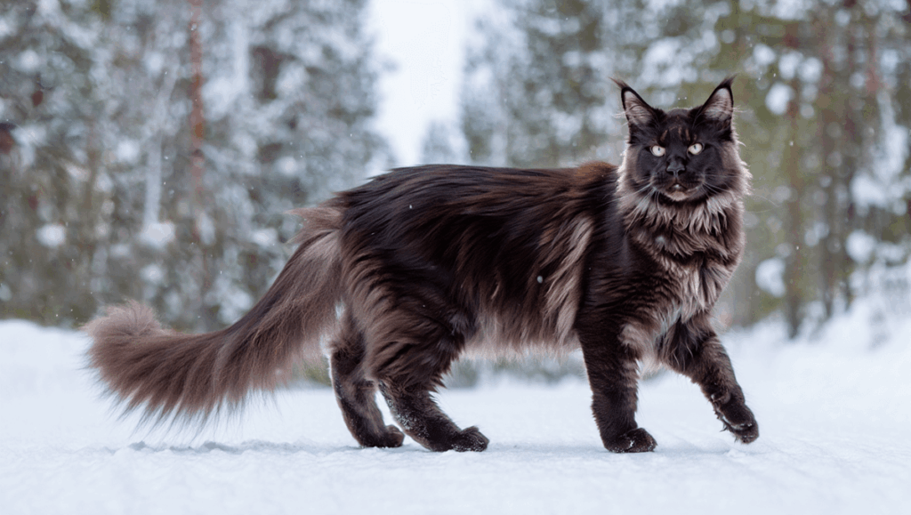 Порода кошек мейн-кун получила своё название именно от штата Mэн. В 1985 году мейн-кун был признан официальной кошкой штата Мэн. Это символ региона так же, как омары или сосновые леса. Слово Maine — это название штата, а coon происходит от английского raccoon (енот). Ранние поселенцы заметили, что у этих крупных кошек пушистый полосатый хвост, напоминающий енотовый, и отсюда появилось народное название «Maine Coon» — «енотовая кошка из Мэна». Конечно, биологически кошка не может быть гибридом с енотом — это старинная легенда. Но имя закрепилось и стало официальным. Мейн-кун сформировался естественным путём в суровом климате северо-востока США. Долгие снежные зимы, влажный морской воздух и фермерский уклад жизни повлияли на особенности породы. Эти кошки были популярны на фермах Мэна как отличные мышеловы. Сегодня мейн-кун — одна из самых популярных пород в мире.