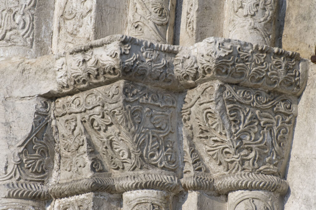 Георгиевский собор. Западный портал с резными белокаменными капителями. Фотография: Уильям Брумфилд. 21 августа 2013 года.